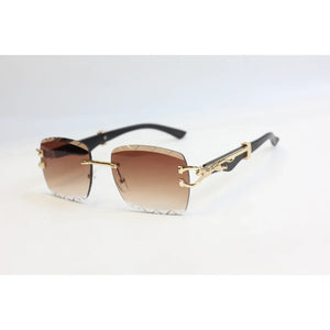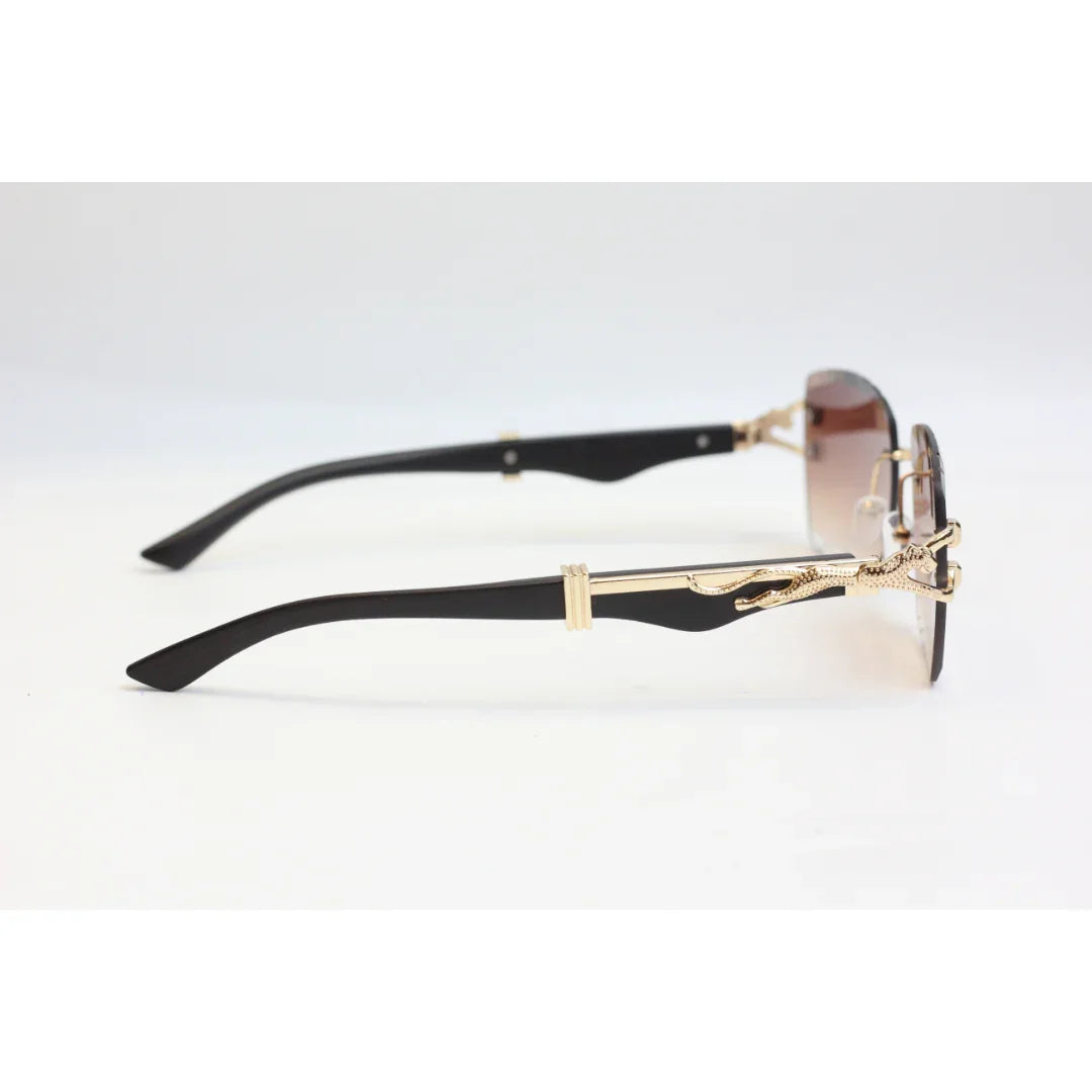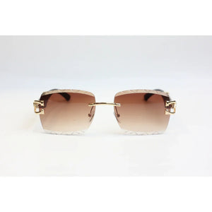 بانثر - R87 - ذهبي - بدون إطار - جسر مزدوج - معدن - مربع - نظارة شمسية - نظارات طبية