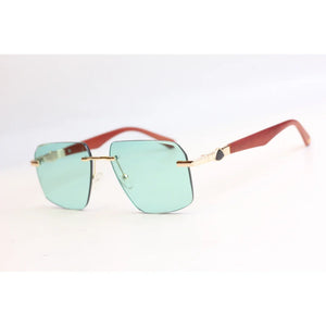نظارة تتبع - RR48 - لون أخضر - بني خشبي - بدون إطار - معدن - مربع - نظارات شمسية - نظارات طبية