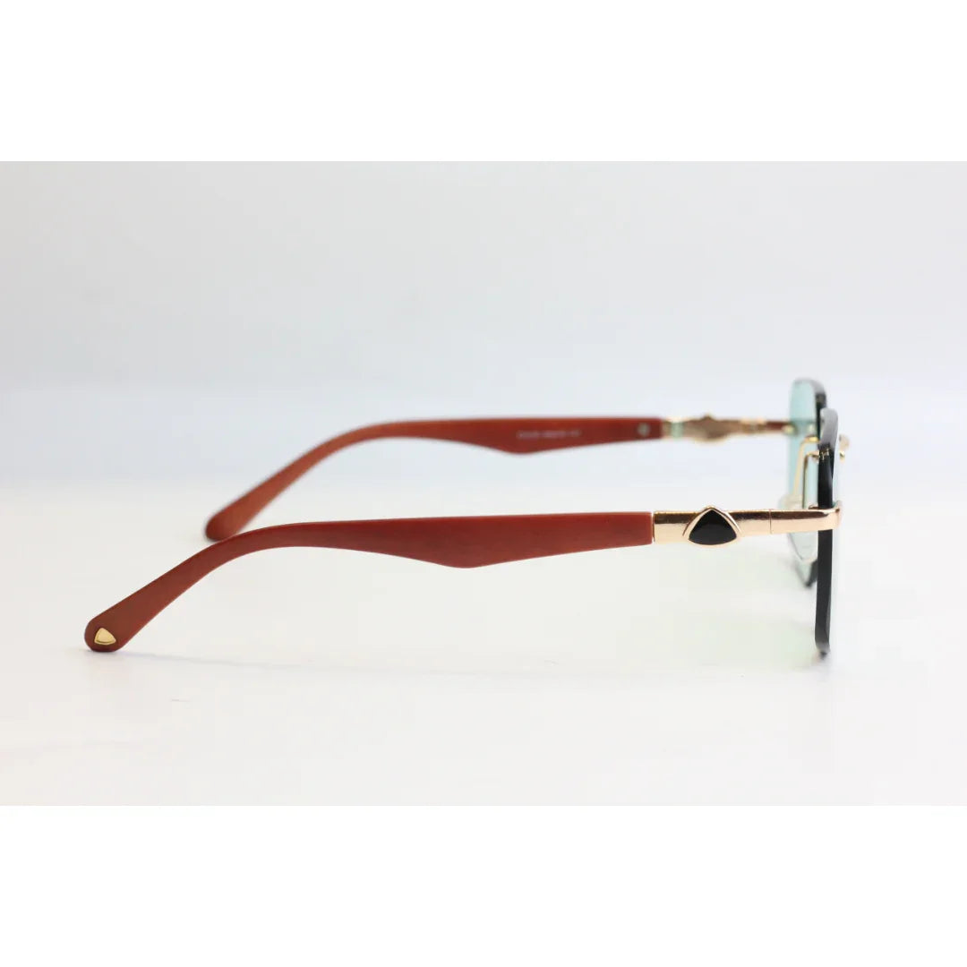 Tracker - RR48 - Green Tint - Brown Wooden - Rimless - Metal - Square - Sunglasses - Eyewear