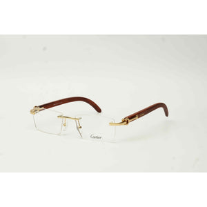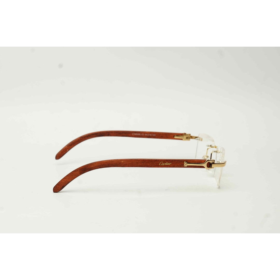 Cartier - CT00525 - Golden Brown - Wooden - Rimless - Metal - Rectangle - Premium Optics - Eyewear