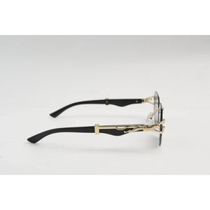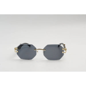 Panther - R09 - Black - Golden - Wooden Texture - Rimless - Metal - Hexagonal Round - Sunglasses - Eyewear