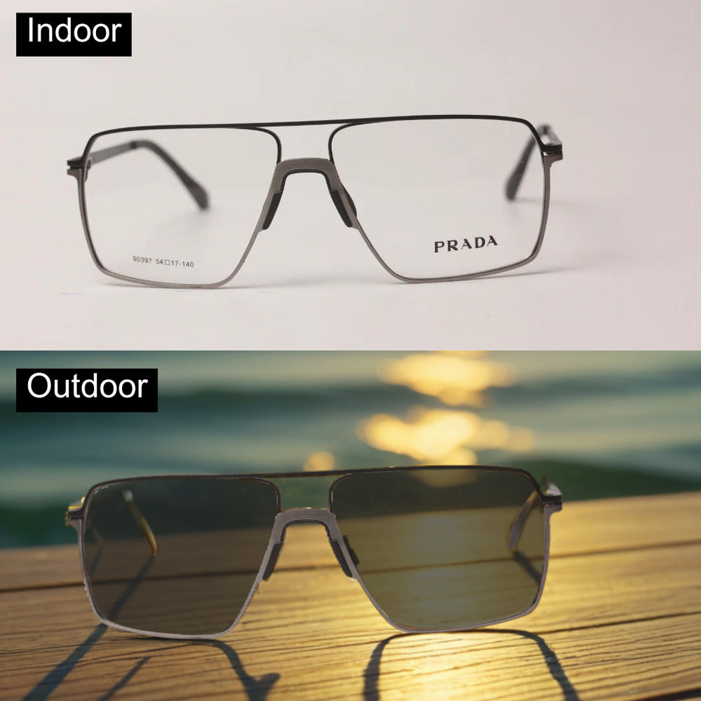 Brand: Prada Dimension: 54-17-140 Gender: Male, Female, Unisex Material: Metal Shape: Rectangle Lens Type: Transition CR Frame Width: 134 mm Size: Medium |
